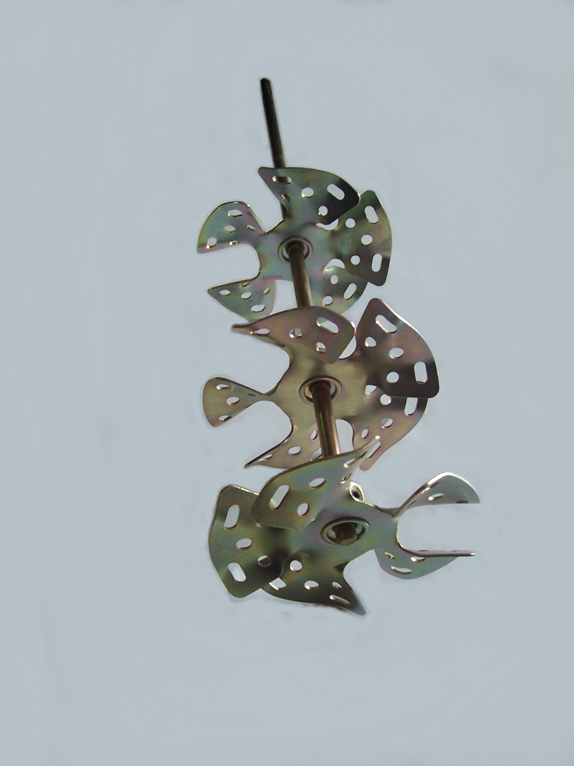 Made of plated steel, three 6-1/2" adjustable wheels, 1/2" x 24" shaft. Use heavy duty 1/2" to 1" drill of 450 to 750 r.p.m. for 12" diameter 5 gallon pail of thick trowel mix in 18 seconds, or 6 sacks of drywall mud in 16"diameter 20 gallon drum in 2 minutes at 750 r.p.m. For 24"diameter 55 gallon paint viscosity, space upper wheels farther apart on extended shaft and use 750 r.p.m. for quick dispersion.